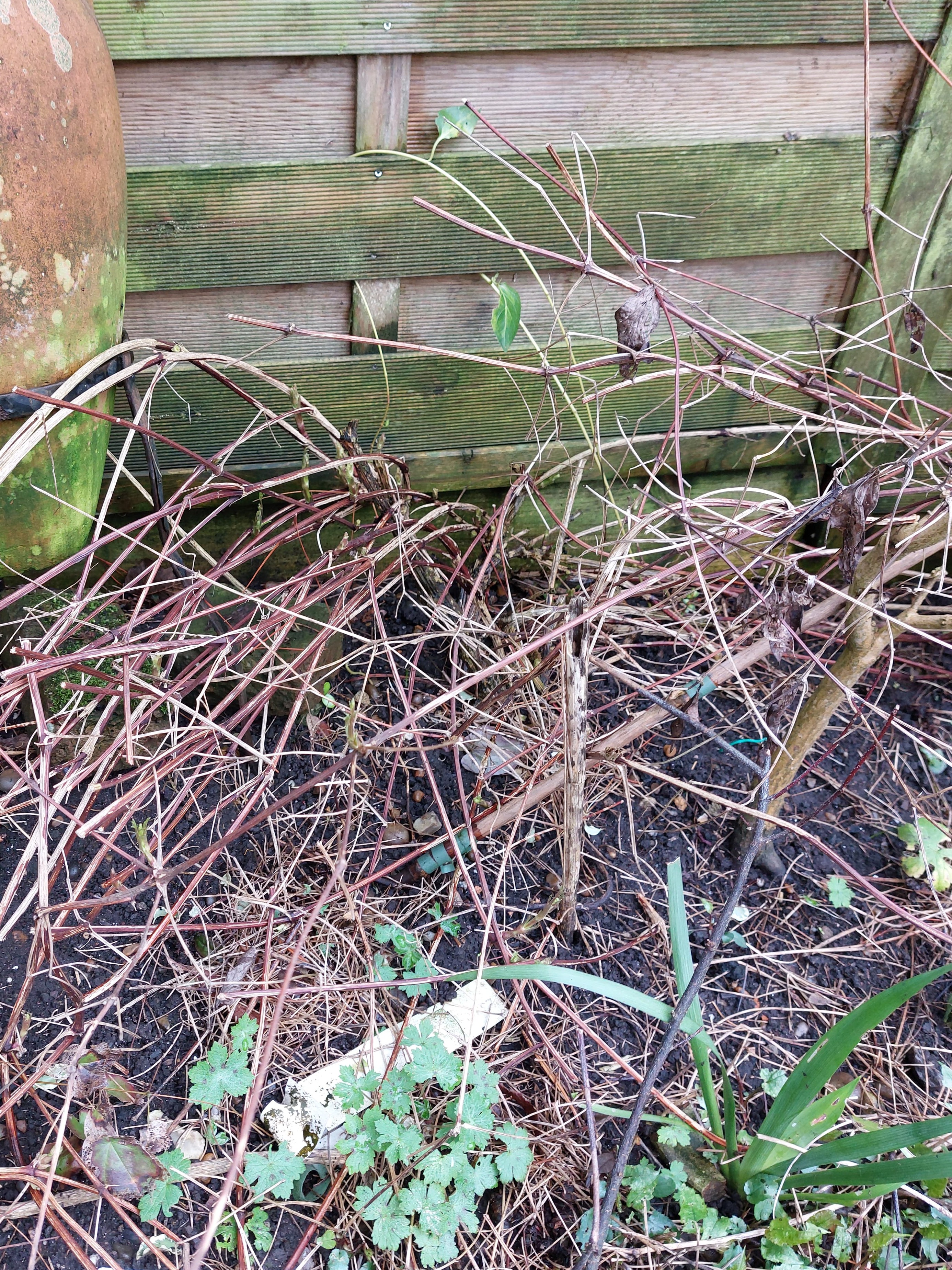 The winter-flowering shrubs were of course out in force (Camellia, Jasminum nudiflorum – winter jasmine, Skimmia japonica, Viburnum – both V. bodnantense and V. tinus, Clematis ‘Freckles’ and Daphne odora), as were the hellebores (though mine have remained resolutely in bud with not a single one opening yet!). Mandy A’s Loropetalum (Chinese witchhazel) was in flower, as were several people’s Hebes. My Chaenomeles japonica (Japanese quince) was covered in fruits, but still producing the odd confused flower too, along with a nearby Geranium macrorrhizum and Geum rivale.