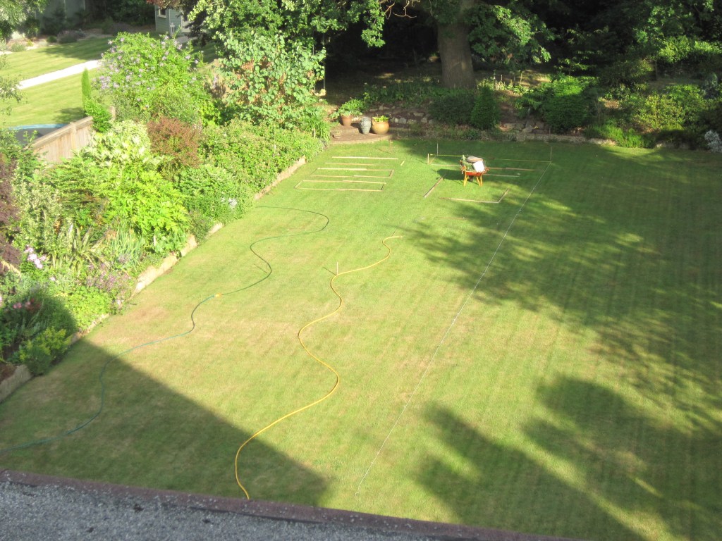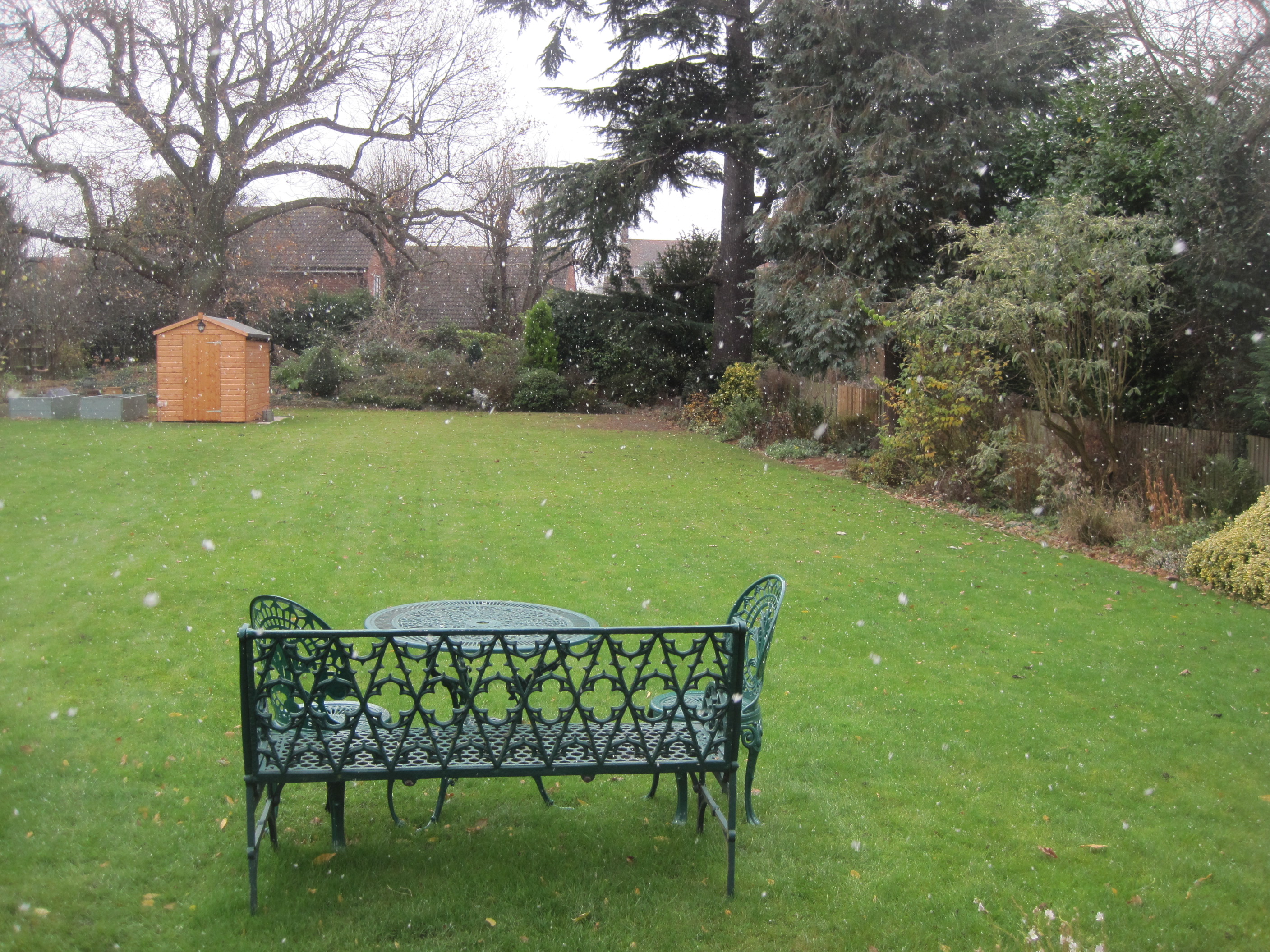 Before the dividing fence went up between the two gardens a man came to us to erect a shed in, what appeared to him, to be the middle of our large rectangular lawn. I showed him the sticks I had placed to mark where I would like the shed to be built. He took his hat off, scratched his head and asked “Are you sure that’s where you want it? -It’s a bit random isn’t it?”