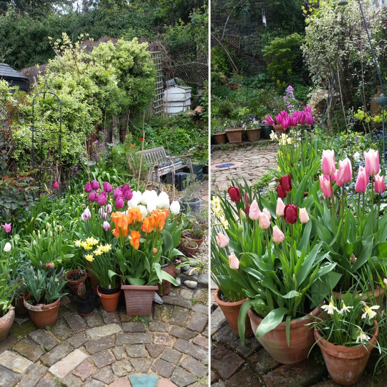 Here is Pat’s Spring garden, the squirrels have left her some tulips then!