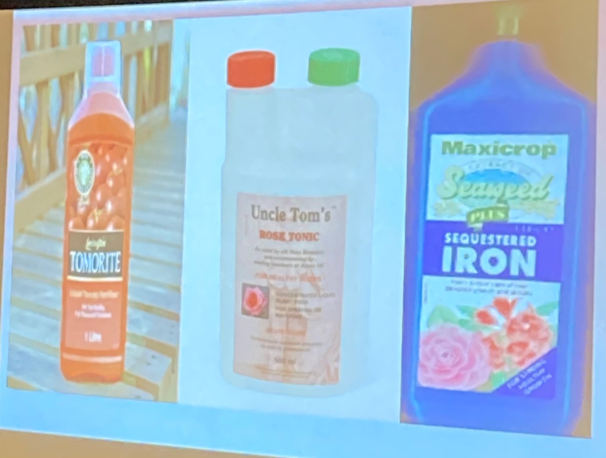 5. FEEDING: Feed twice a year a potash based fertiliser in March and July such as Top Rose or Uncle Toms Rose Tonic which although more expensive is better. Use a liquid feed every fortnight from May to September. He also recommended banana skins as they contain potash. Roses need lots of water often every day in summer.