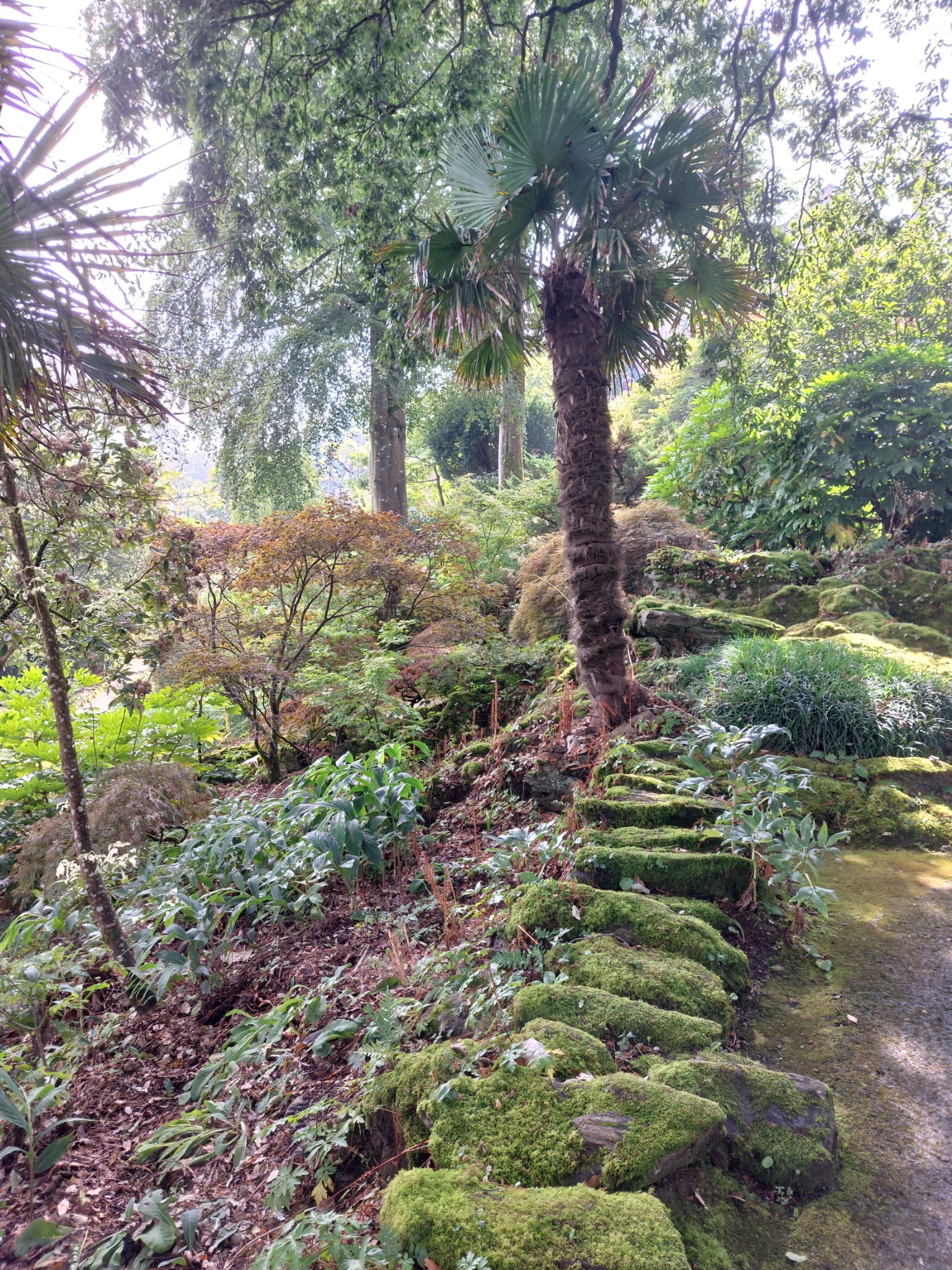 The day was very warm but luckily there’s plenty of shade provided by the collection of trees including magnolias, olives and palms of various sorts and the feel is very much sub-tropical. Amongst many areas there’s a Gazebo Garden, a Banana Garden, the Old Quarry, the Statue Garden and a lovely shady Woodland garden with a viewing point over to Salcombe with stunning views. Many lovely plants grow on the slopes and with only 3 full time gardeners I should think they rely heavily on volunteers although how they regularly navigate those lanes was a mystery to us. There’s a refreshment area (outdoors) and a picnic area. If you are in South Devon it is very well worth a visit and I hope the pictures convey the variety of lovely plants and trees you can see.
