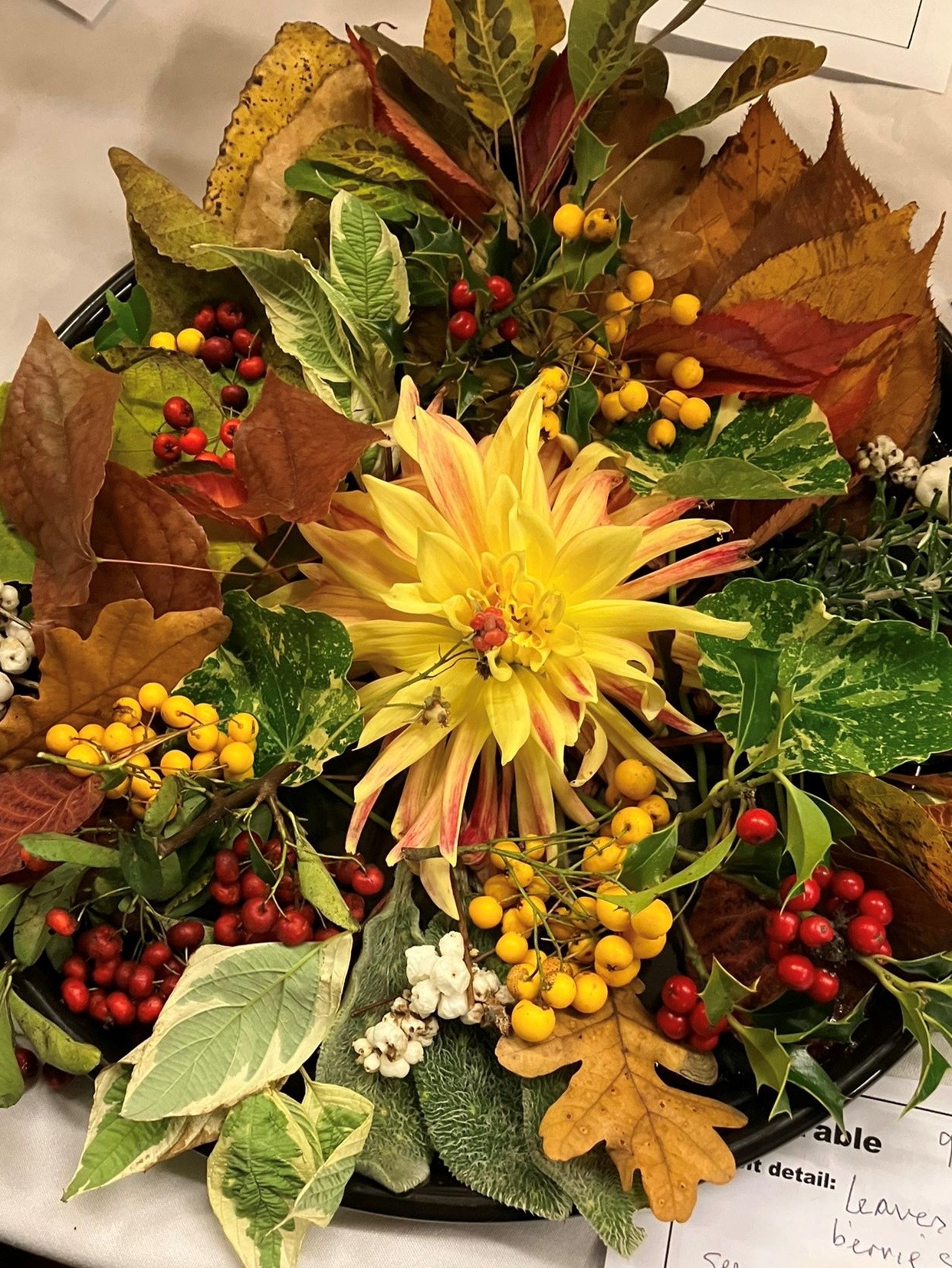 Members also brought in colourful leaves and flowers to display as a mandala, and Annie added hers to make a pretty Show Table exhibit.