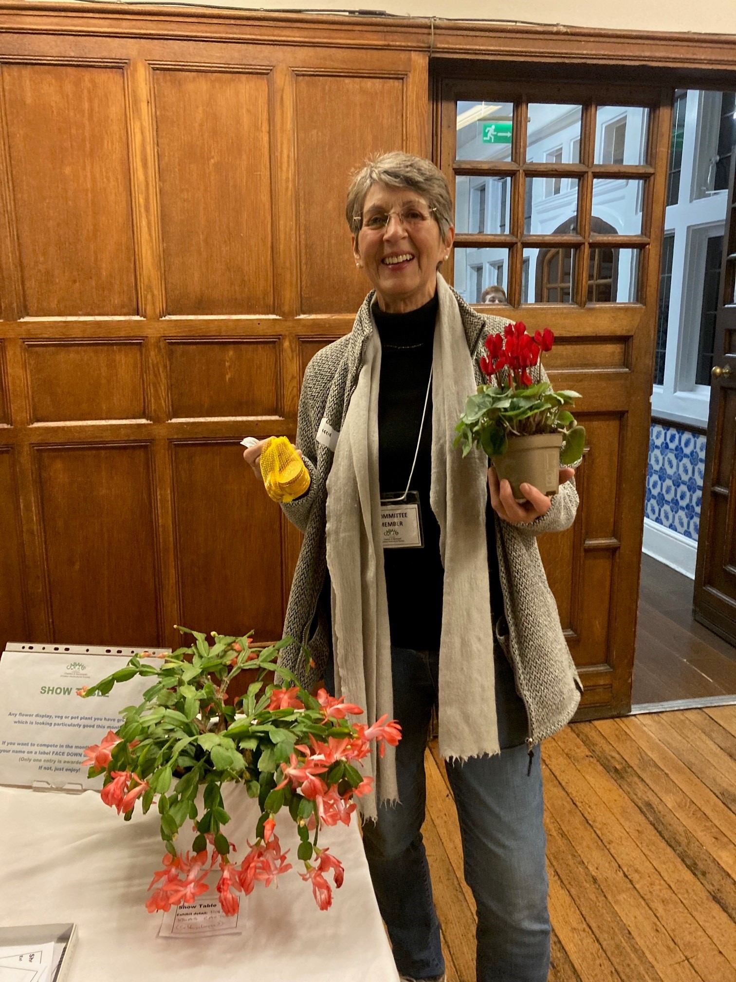 Another wonderful Show Table at our November meeting, with beautiful Autumnal overtones. Winner of “Best on the Table” this month was Maggie, with her “Not quite Christmas” cactus in full flow. There were some lovely late Salvias and Carolyn’s Persicaria gave a real “pop” of pink to the table. Lynda’s asparagus (which won the Wildcard at the Spring Show) keeps on giving, with leaves a zingy yellow this month.