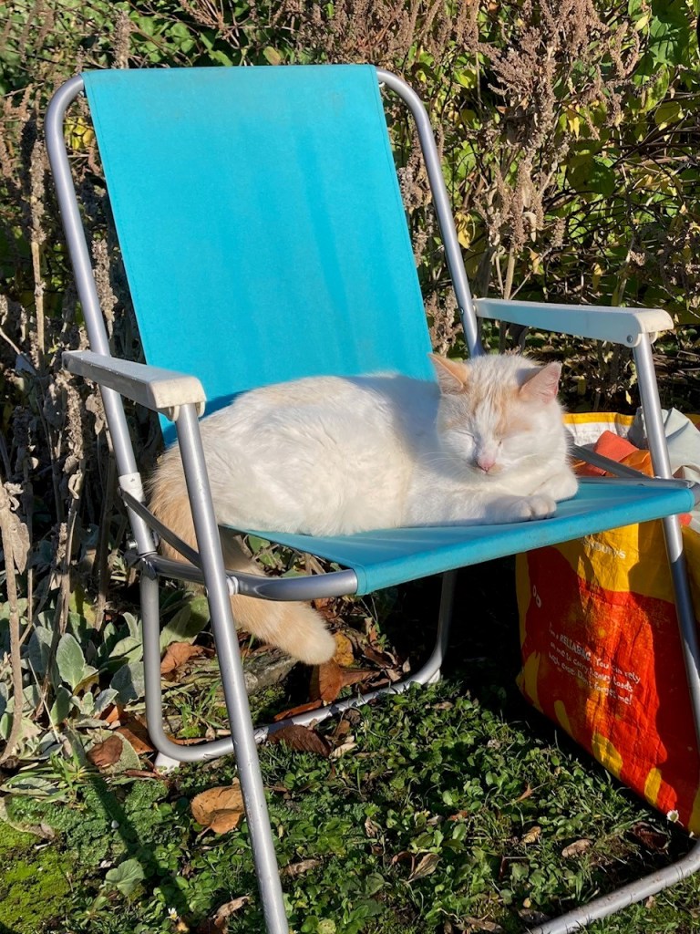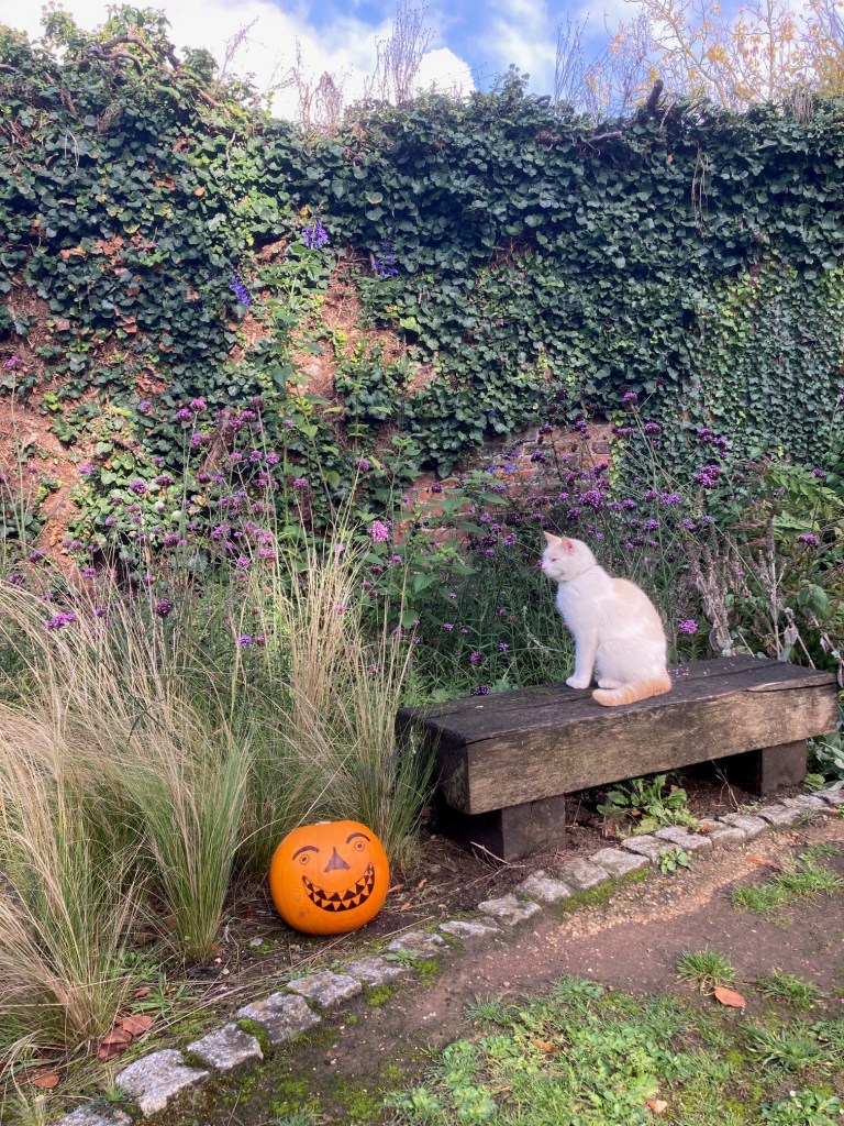 October saw us holding another plant stall at the Horn Fair, and a pumpkin and spider trail for the kids. Autumn colours really kicked in. Casper is still a regular visitor, although not particularly helpful! We made our usual recycled bottle poppy display for Remembrance Sunday.