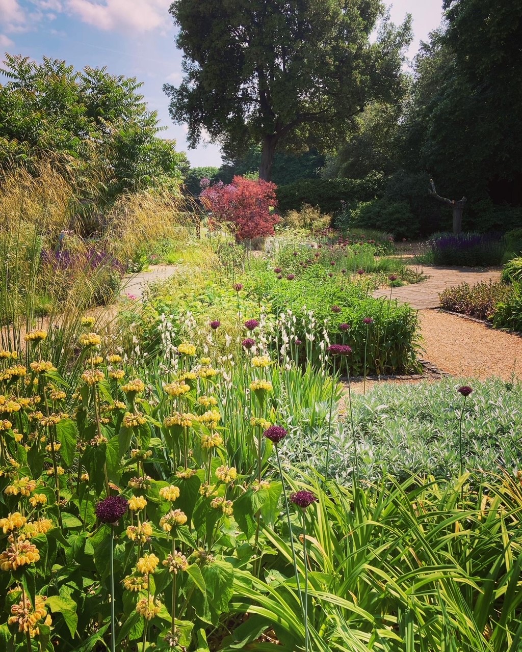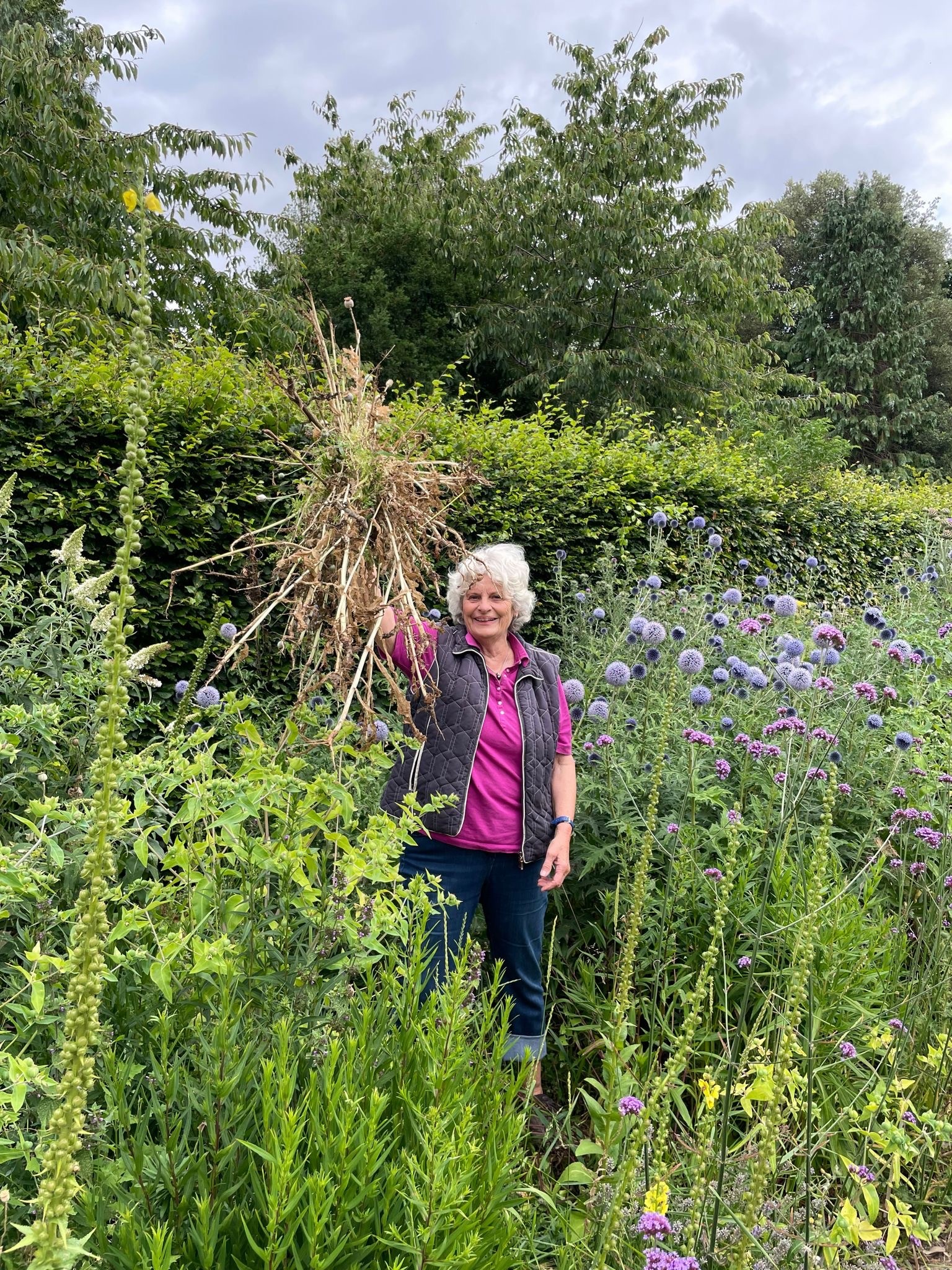 The final palm roots had been removed by May (they were HUGE!) and preparation and planting started in the front beds. The Peace Garden beds were re-shaped, they will be better for functions like weddings and coincidentally there is now more “bed” available to plant into! The Wilderness paths really came into their own as the grass around them became taller. When he wasn’t mowing the paths, Pete bravely tackled the area around the Substation, which was full of very thorny shrubs like Pyracantha and Berberis, really unpleasant to work with. The rose beds at the front were tidied and some major Long Border weeding started.