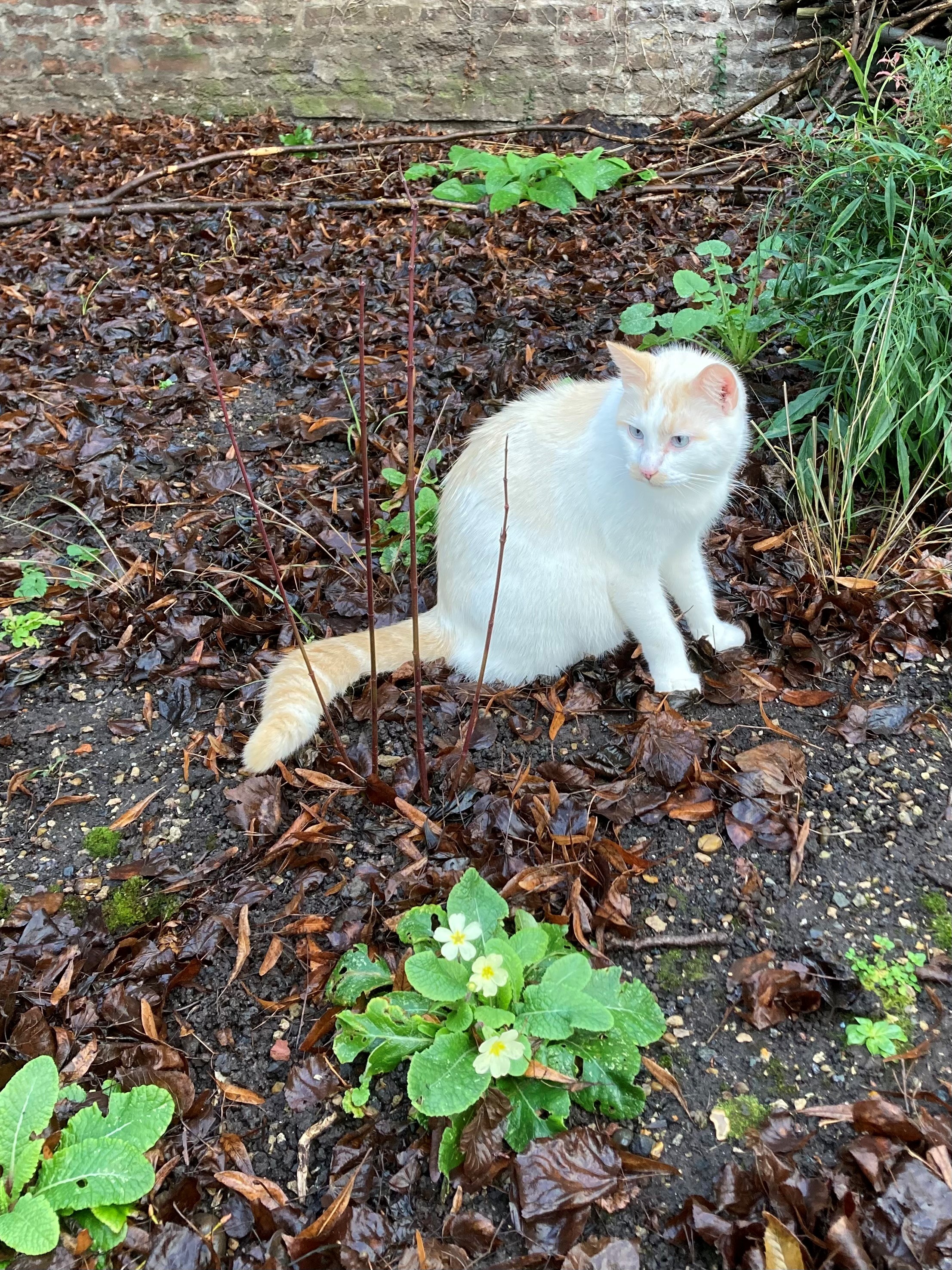 Ok, it’s not in flower, but Ironweed (Vernonia) looks almost as good now as when it was! And finally, one of Casper helping to count the primroses. Hoping for better weather soon.