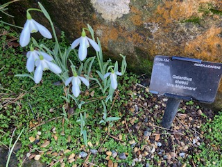 The magnificent sandstone rock garden nearby, which mimics mountainous regions, is an important feature of the gardens, and here and there, in mostly sunny locations, could be found very choice, small clumps of snowdrops which are labelled for the visitor. I would love to have any of these growing in my garden and I thought you might too.