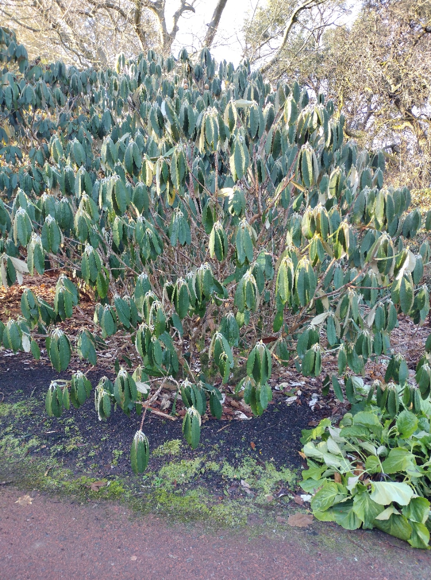 The sun was shining and the sky a bright blue but the frost remained in the shadier parts of the beds and the Rhododendrons had bowed their leaves to protect themselves from the cold. But they were also covered in buds, waiting to burst forth in a few weeks time.