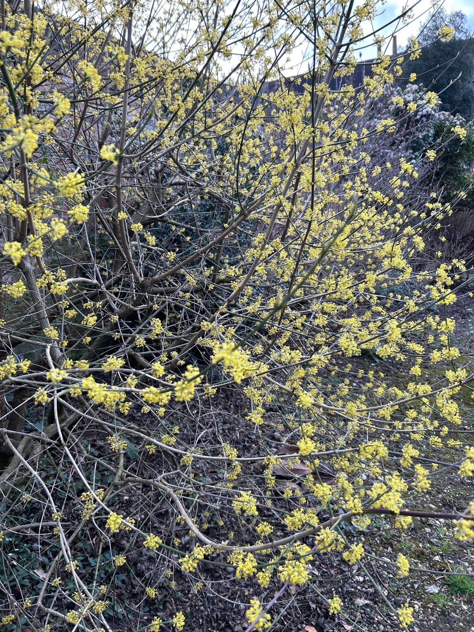 A smallish tree / large shrub which can sometimes fade into the background at other times of the year, Cornus mas is covered in tiny yellow flowers in February and March (sometimes earlier) which glow beautifully in the low light at this time of year. It produces small, cherry-like berries in the autumn.