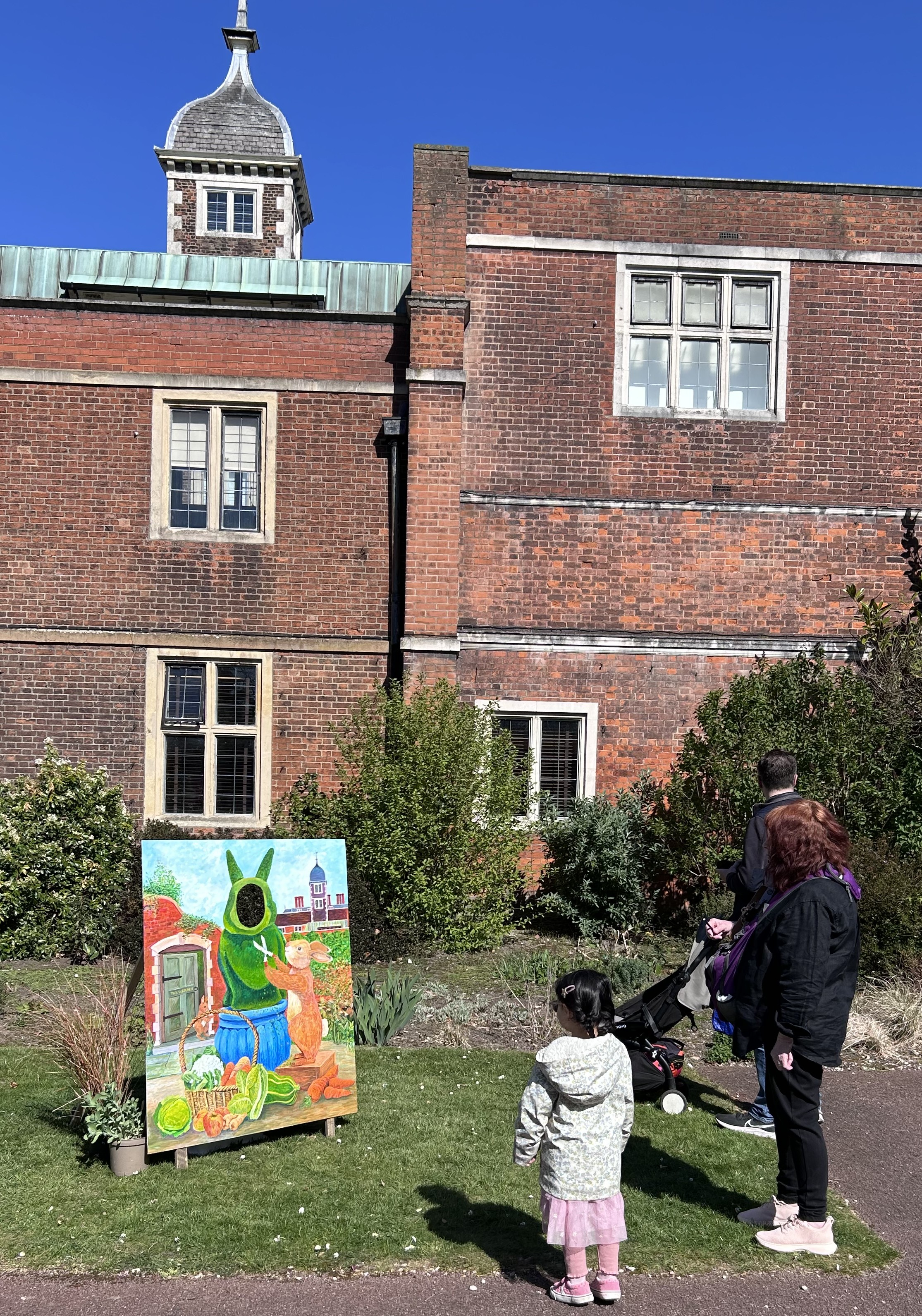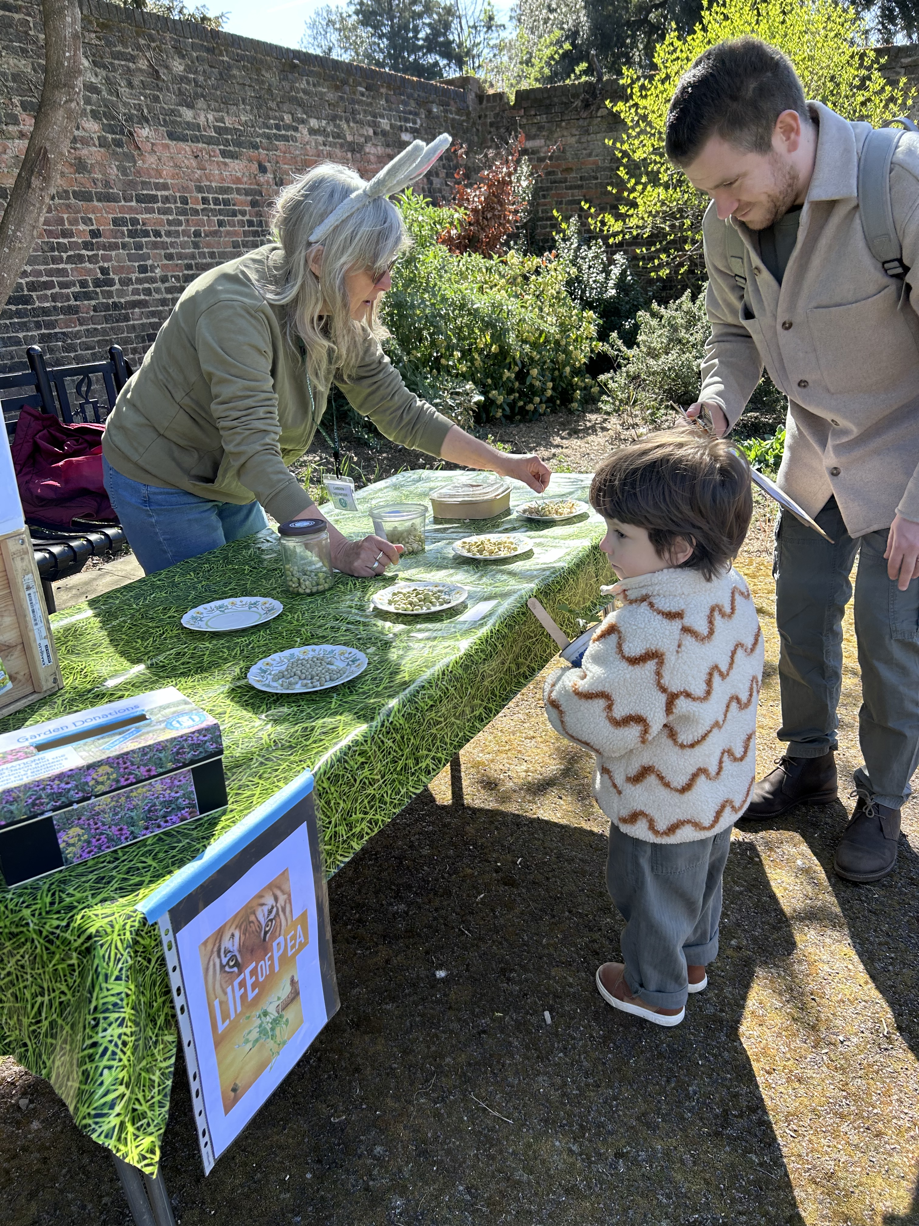 After completing the trail, there was lots more to do in the Peace Garden. We had the Alpine Strawberry potting up table, Splat a Carrot game, Life of the Pea, Tic Tac Toe and of course Bobbi the real bunny. Parents could buy a plant or two from our Plant Sales Table. Other groups joining in the fun: Face Painting with Anna from Magic Eyes https://www.instagram.com/magic_eyes_face_painting/ and Bunny crafts from Miriam of the Charlton Library https://www.better.org.uk/library/london/greenwich/charlton-house-library and more crafts and toys with Vicky and team from Charlton Toy Library https://charltontoylibrary.org.uk/. It’s so good to collaborate with other local groups.