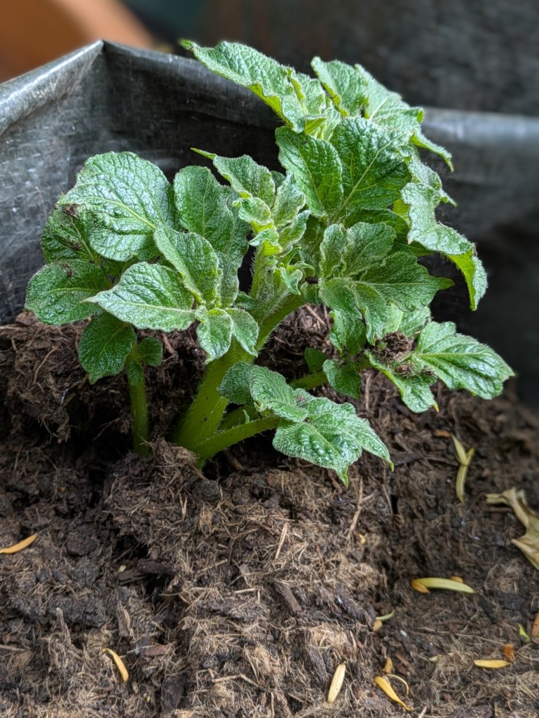 8. Keep earthing up potatoes which are growing away fast in the current conditions. If they’re in pots, keep covering with compost either bought or your own home made. I use old potting compost from bulbs too.