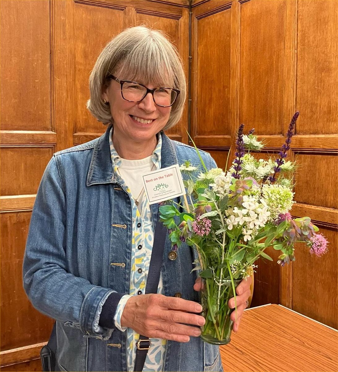 There was a great turnout for the CABAHS May meeting, even after the exertions of the previous day’s Plant Sale! A small but beautiful range of items on the Show Table, from a cornucopia of Spring flowers to a single rose and a cactus. Congratulations to Kathy for winning this month’s ‘Best on the Table’ prize with a vase of Salvia, Cerinthe, Teucrium, Hesperis, Centranthus, Luzula and chives.