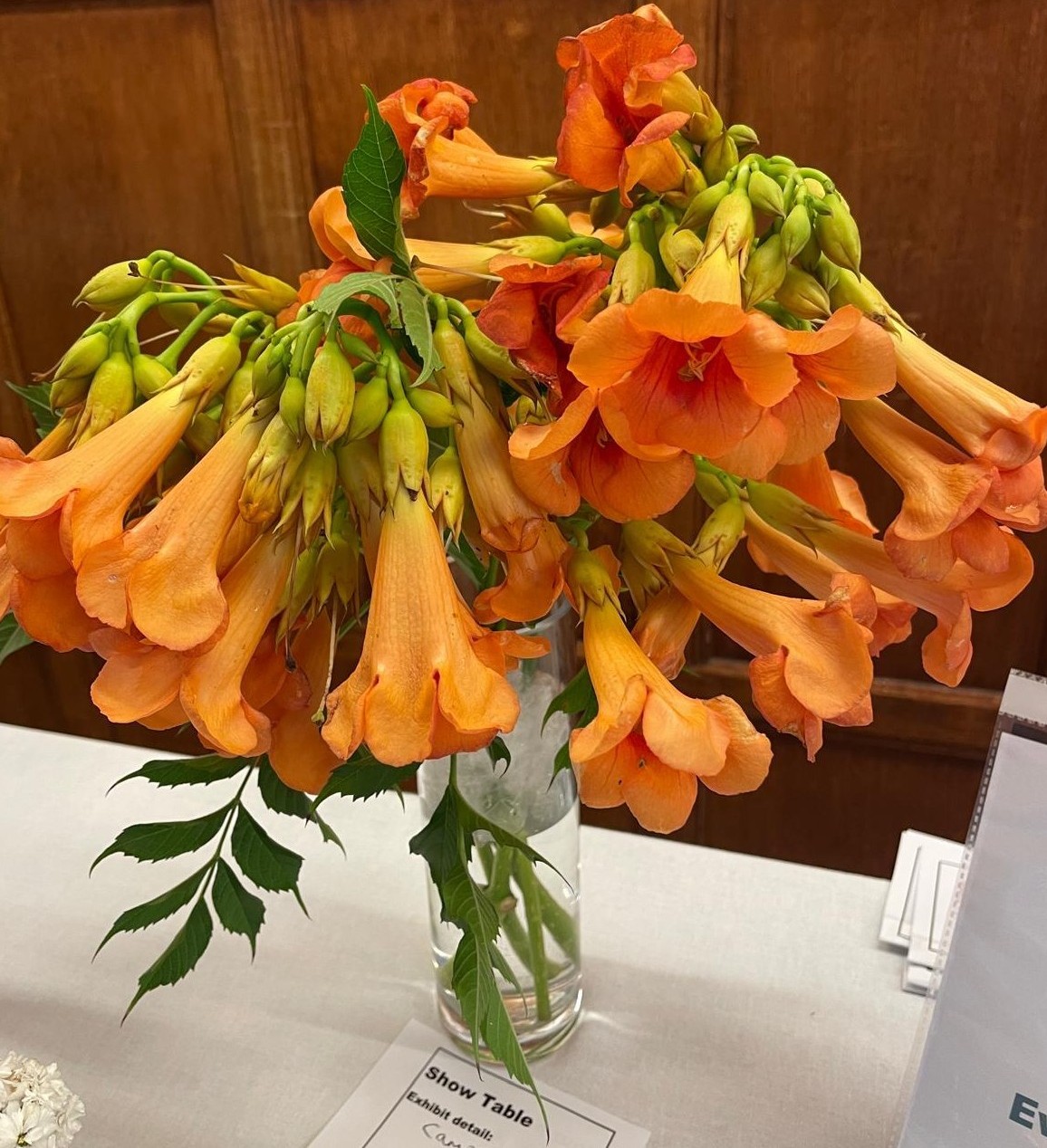 Lots of variety on the Show Table this month, just as we like it! The Show Table is a chance for members to bring in and display plants and flowers that are performing well in their own gardens each month, be that a single flower / stem / fruit / vegetable or a display of all that is looking good – or indeed something in between. It’s lovely to see what people are growing.