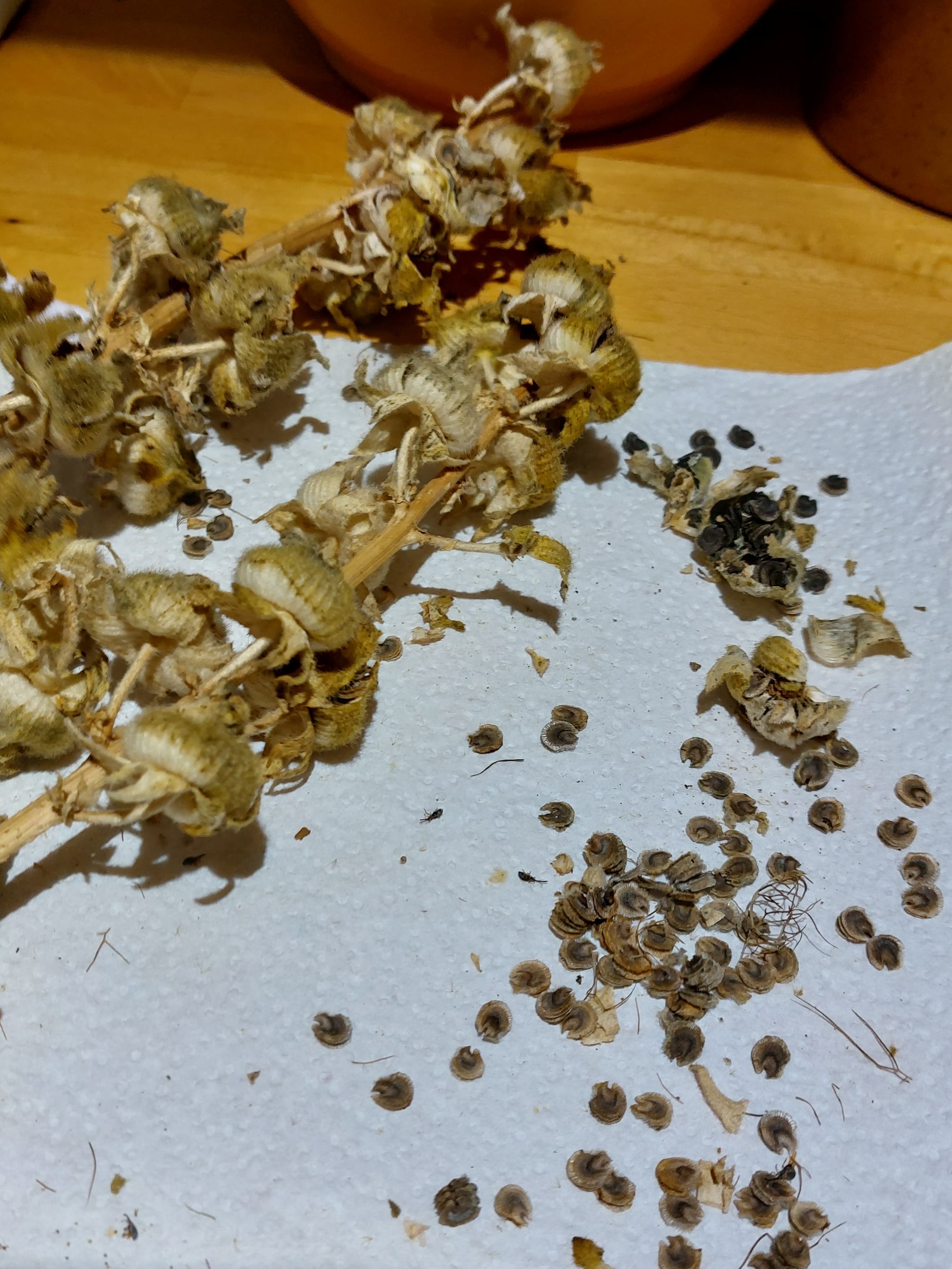 5. Hopefully you managed to collect some seed before the rain came but if not, wait for a dry day and then dry on a warm windowsill before placing in paper bags or envelopes.