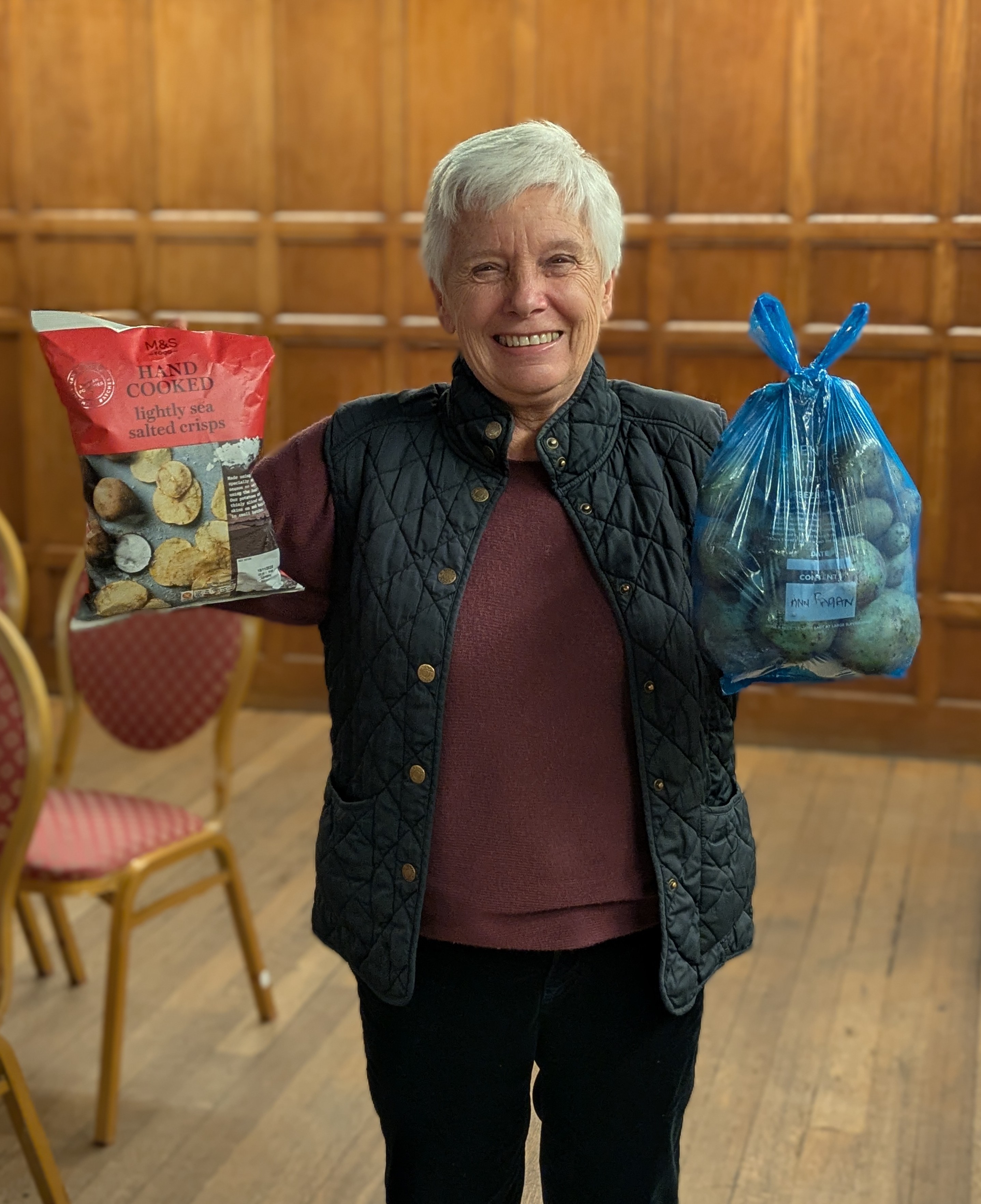 The potato competition had been held over from the Autumn Show, due to it being held in August this year. Those maincrop potatoes needed more time to grow, and grow they did, at least for some of us – Ann’s astonishing 2.419kg crop (from a single potato in a container!) won the day. On receiving her traditional prize of a bag of crisps, Ann said that simply keeping the potatoes regularly fed and watered was the secret to her success.