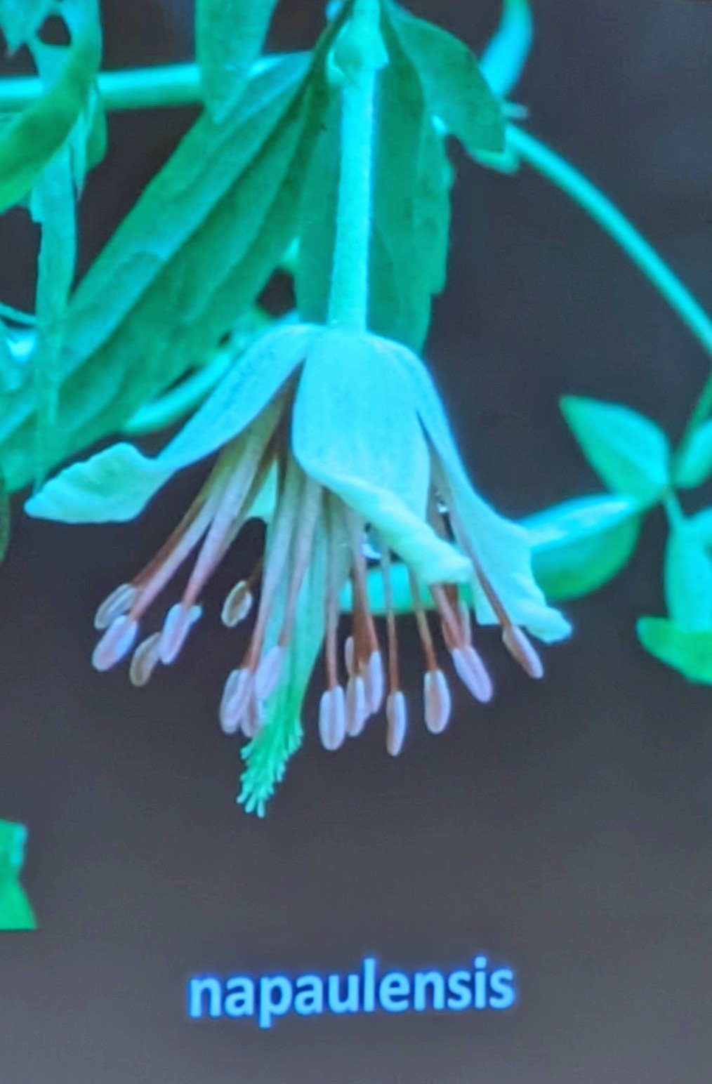 - C. napaulensis was introduced from Nepal. It flowers late in November and can be very vigorous. It is semi evergreen and the leaves turn brown after flowering. Everett suggested planting winter flowering clematis behind sheds or trees so that the ‘untidy’ looking plants cannot be seen in summer but can be rediscovered when walking around the garden during the flowering season.