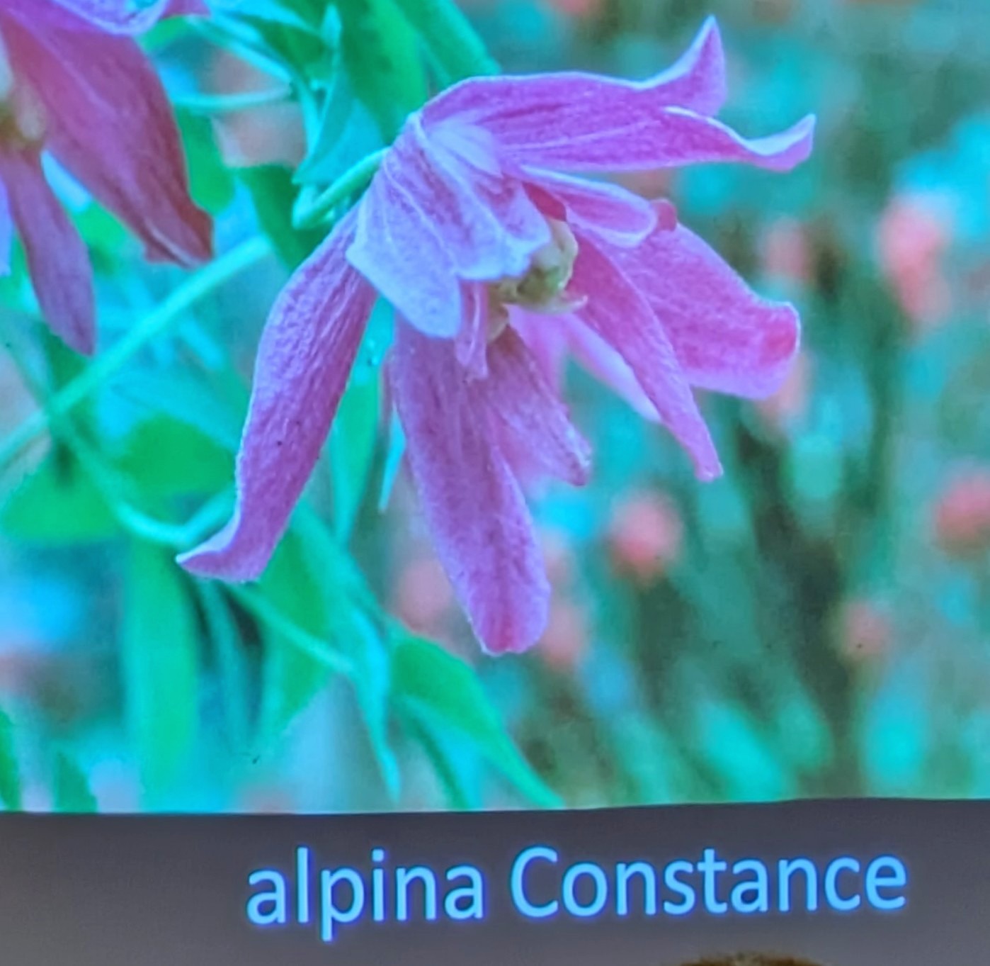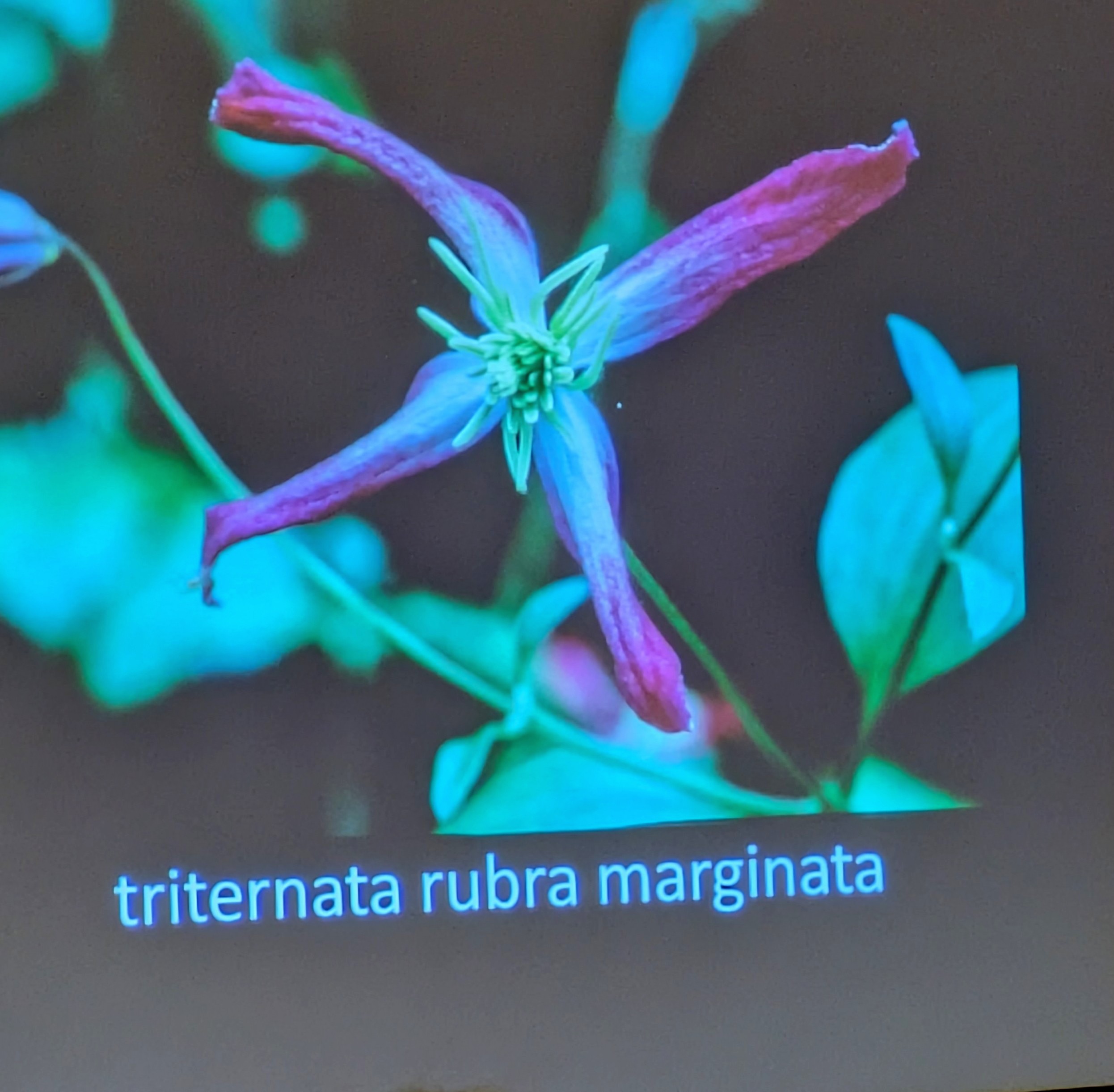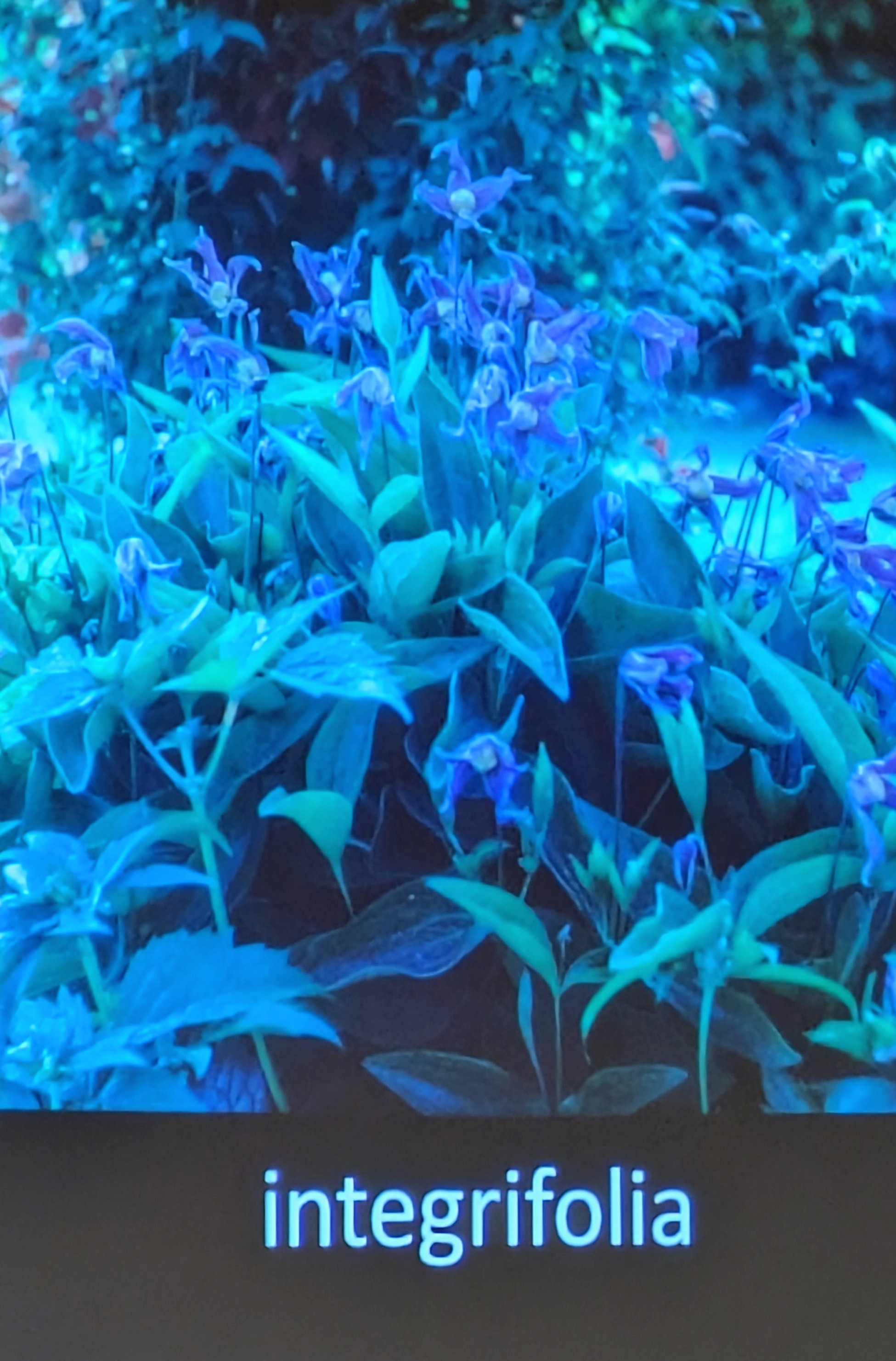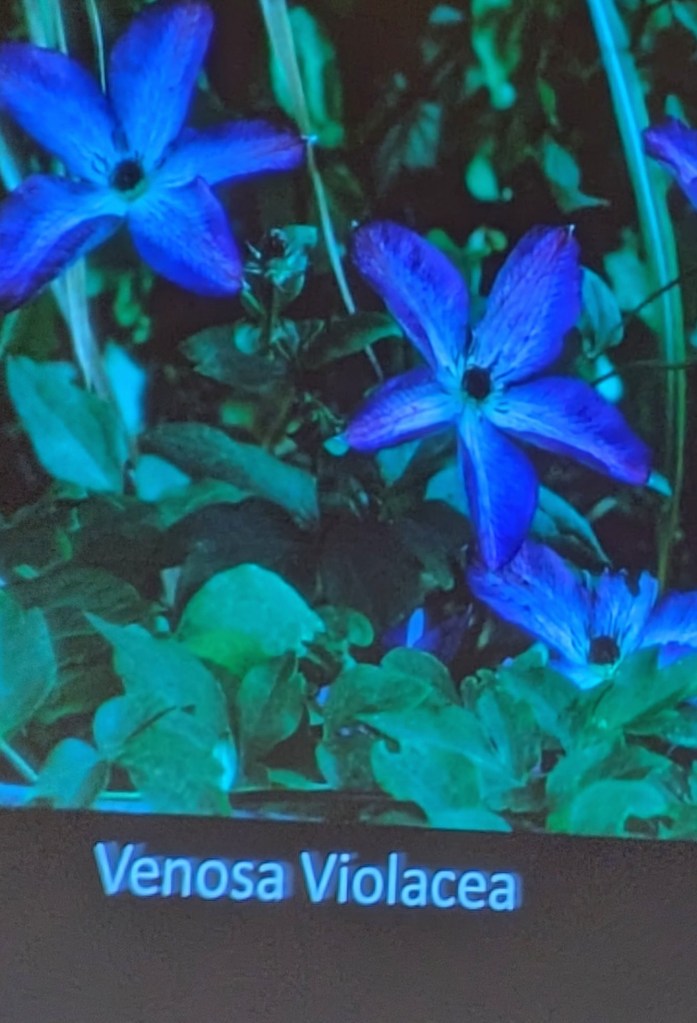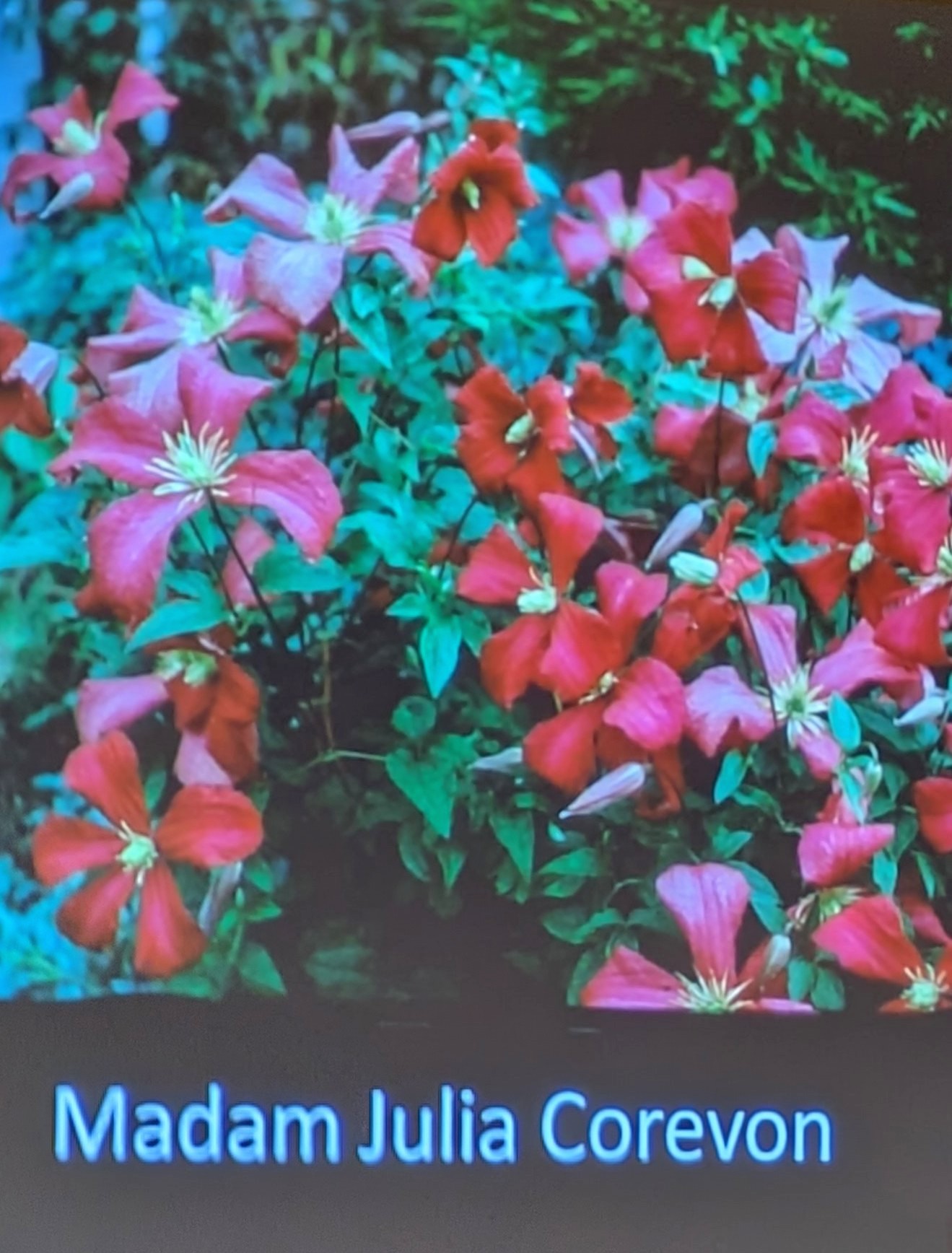 The array of Clematis available was shown through a display of beautiful photographs, just a few of which have been picked out below (with links to images and information from Clematis on the Web, run by the International Clematis Society and to which Everett is a contributor):