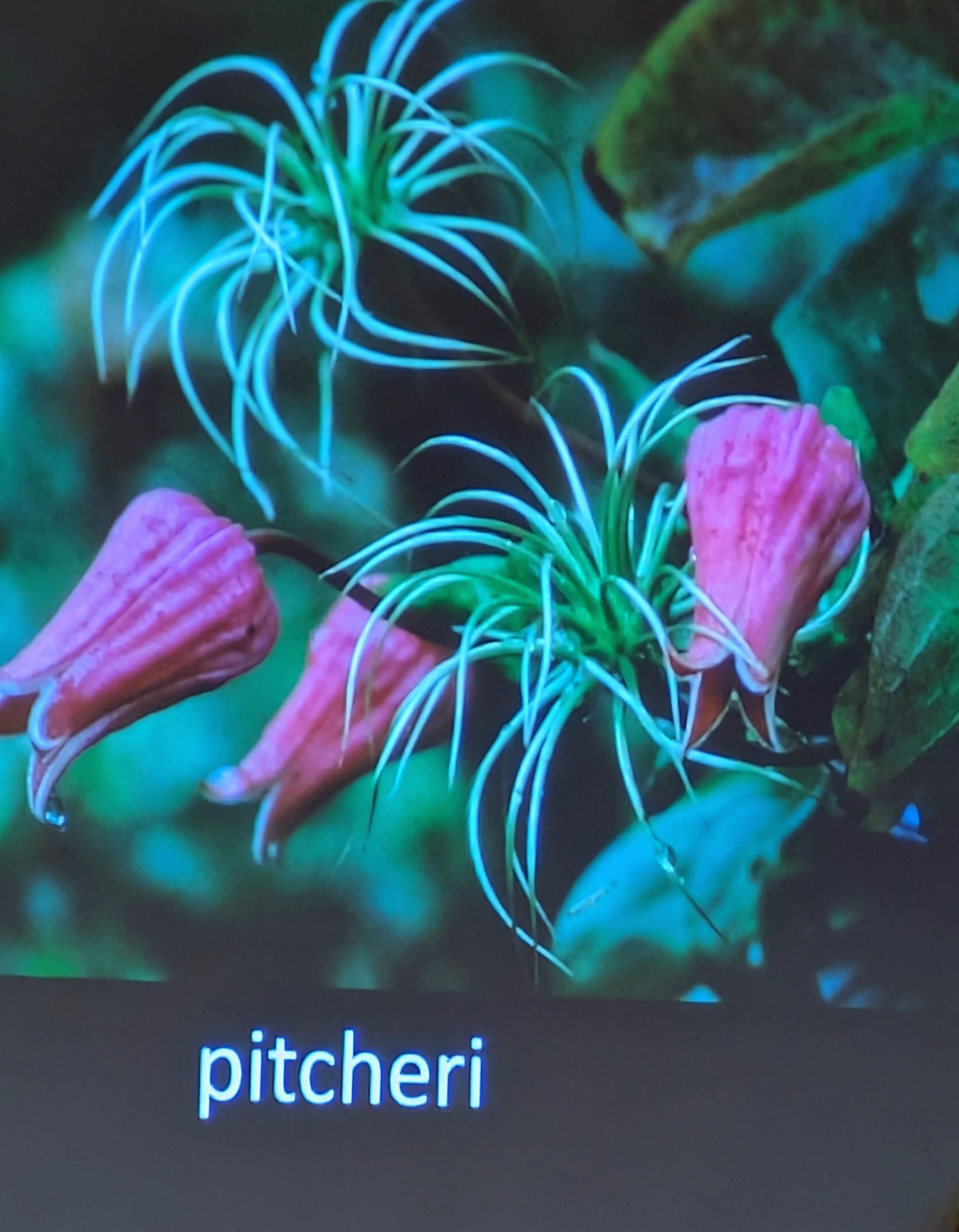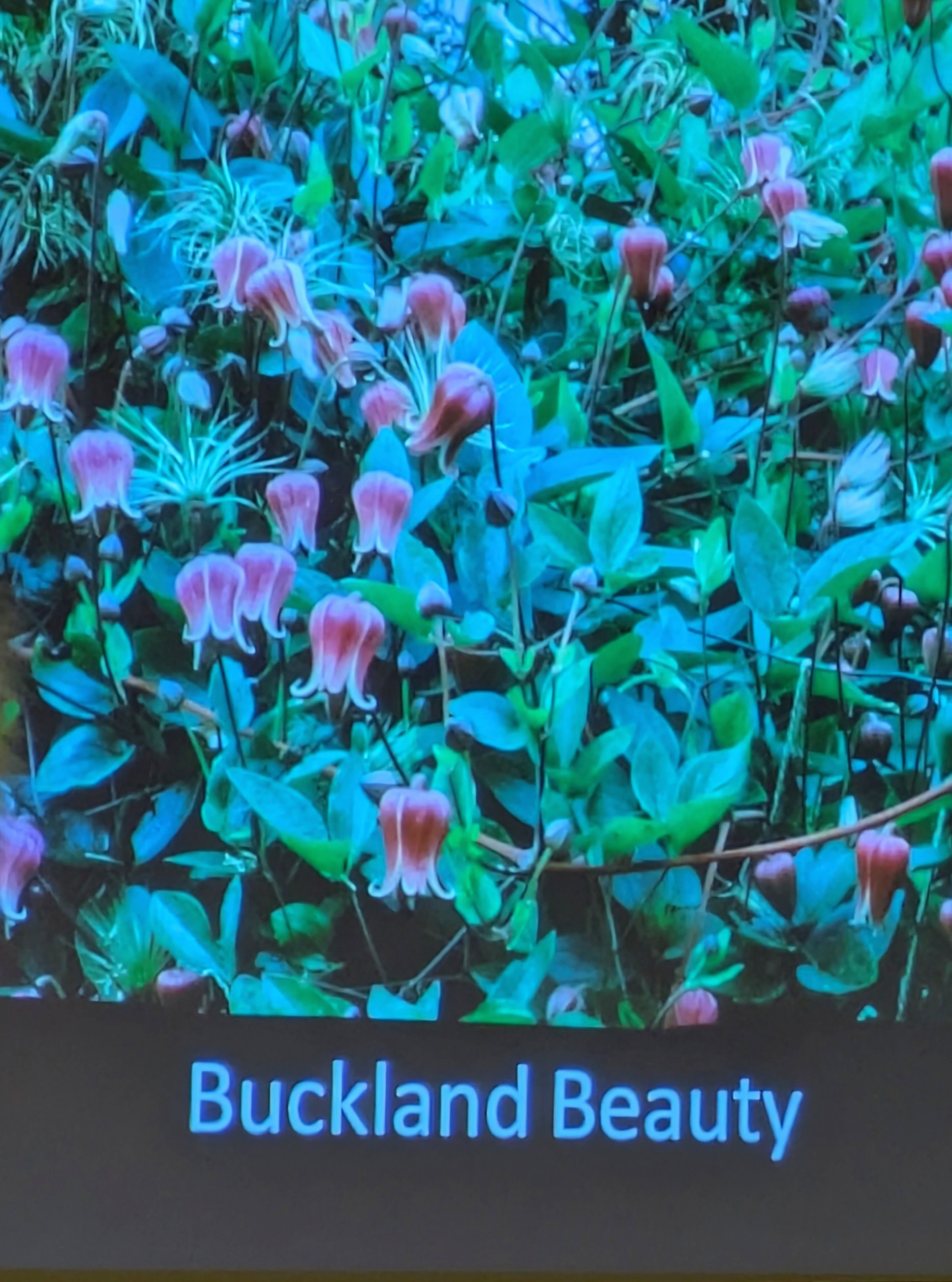 On Monday we welcomed Everett Leeds who gave us an amusing and highly informative talk about the prolific world of Clematis. He has been involved with Clematis for many years through growing, speaking and writing about them. He has been the Chairman of the British Clematis Society four times and is co-author of The Illustrated Encyclopaedia of Clematis . Everett’s enthusiasm for the genus was highlighted when he shared a photo of his former home with the front fence, hedges and trees completely swamped by a 120 foot long and 40 foot high ‘monstrous’ C. Montana. After cutting this completely away, he planted another!