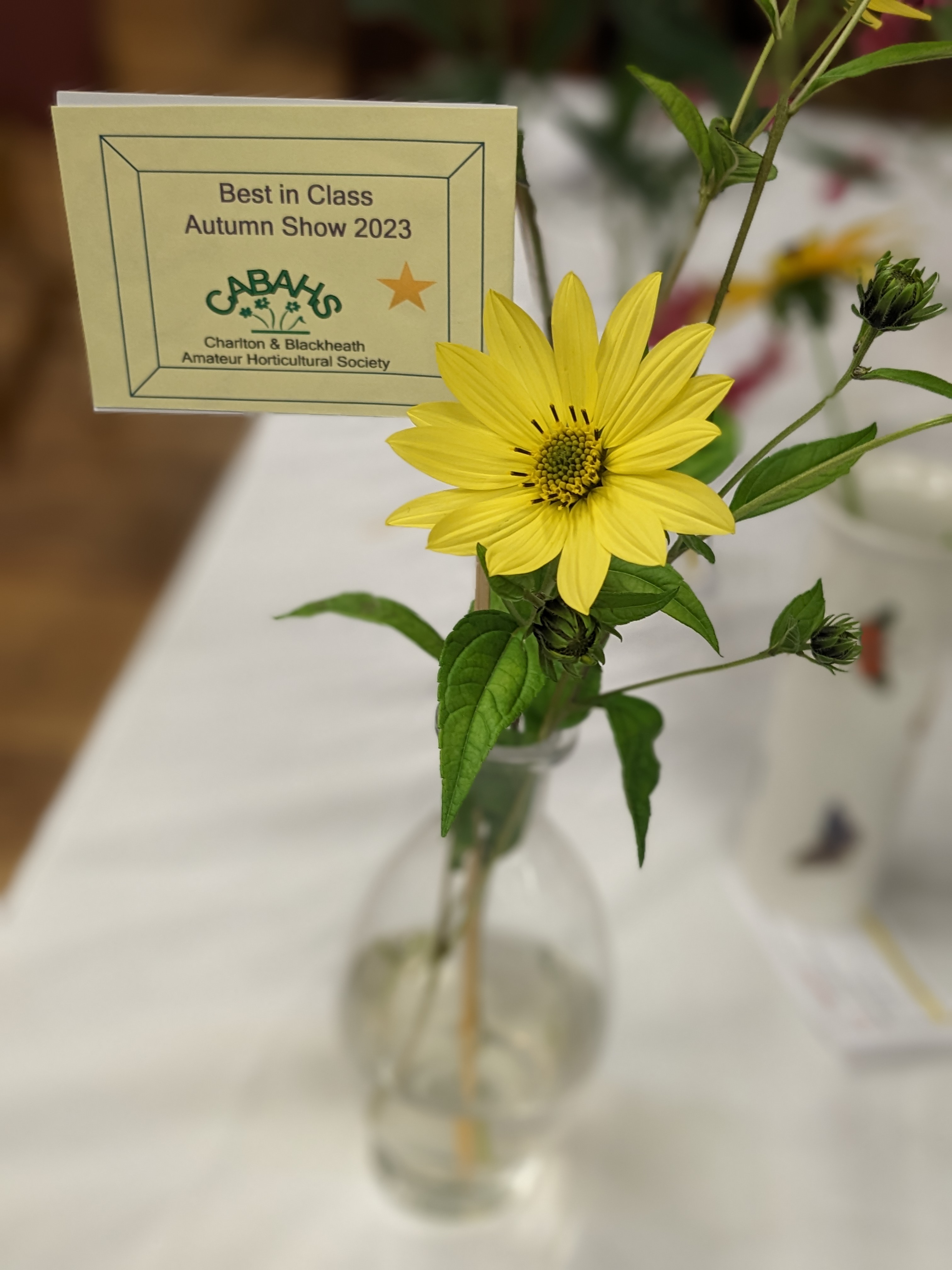 As this year is a special one, in which we celebrate the 75th anniversary of CABAHS, there were a couple of ’75th anniversary’ themed classes, and we were delighted to welcome as judge Jillian Smith, long-time CABAHS member and Chair of the Society, and now joint Vice President with Ron Roffey. Jillian has a long experience in judging shows over many years and has a beautiful garden in Winn Road, which was opened to the public on a number of occasions to raise money for charity.