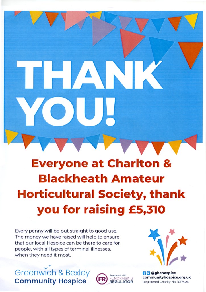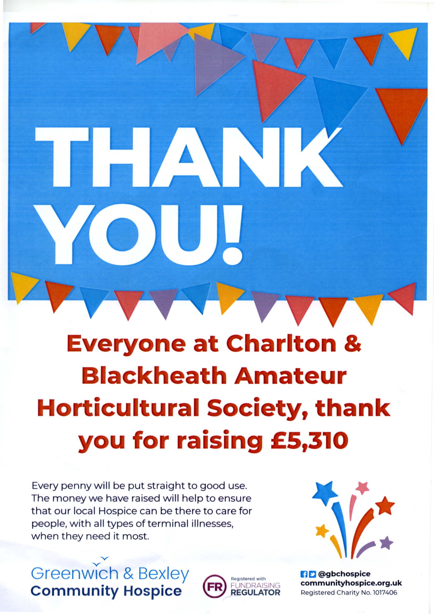 We received a lovely letter of appreciation from Greenwich & Bexley Community Hospice, when we sent them £950 raised at our recent Charlton House plant sale. They looked back over the last 17 years and sent us this certificate showing how much we have raised in total for them. Well done everyone!