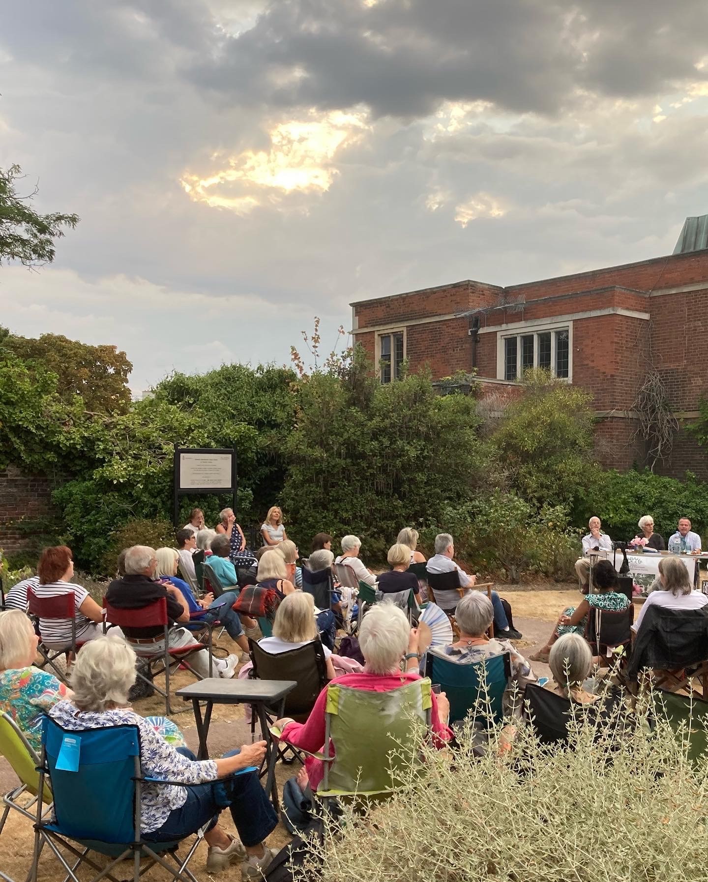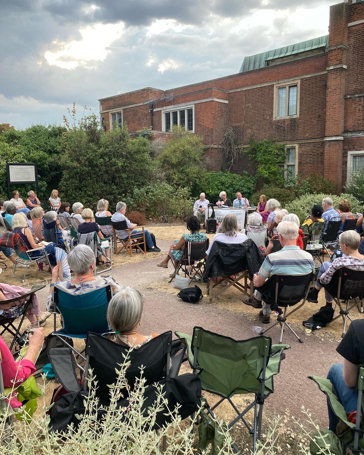 Thank you to our panel, especially guest panellist Joe Woodcock, for cheerfully answering our questions, and to Charlton House for letting us drip all over their cafe. It was still a very enjoyable evening, but sad that not many members saw the old Pond Garden in the dusk, lit up with solar lights and looking magical.