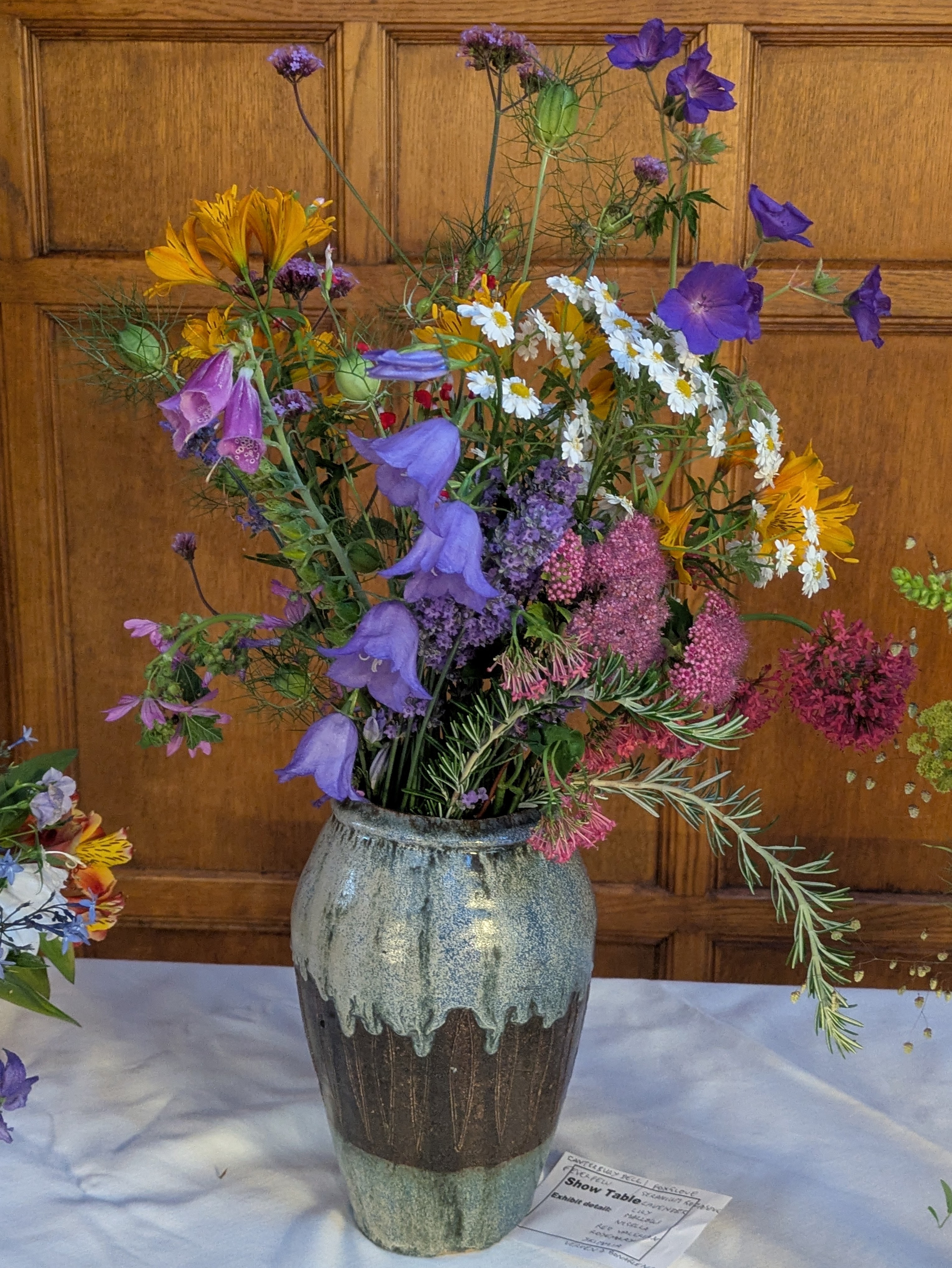 There were some exquisite entries for the Show Table this month (click on the images to see in detail), but it was the simple, single species vase of sweet peas that won the prize.